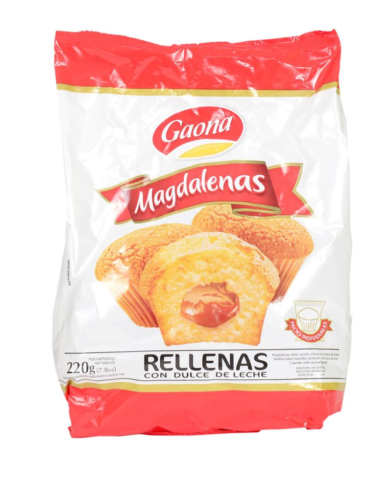 Magdalenas Gaona rellenas de dulce de leche 200 g, esponjosas y deliciosas, ideales para meriendas y snacks. Cómpralas hoy en Ferniplast.com.