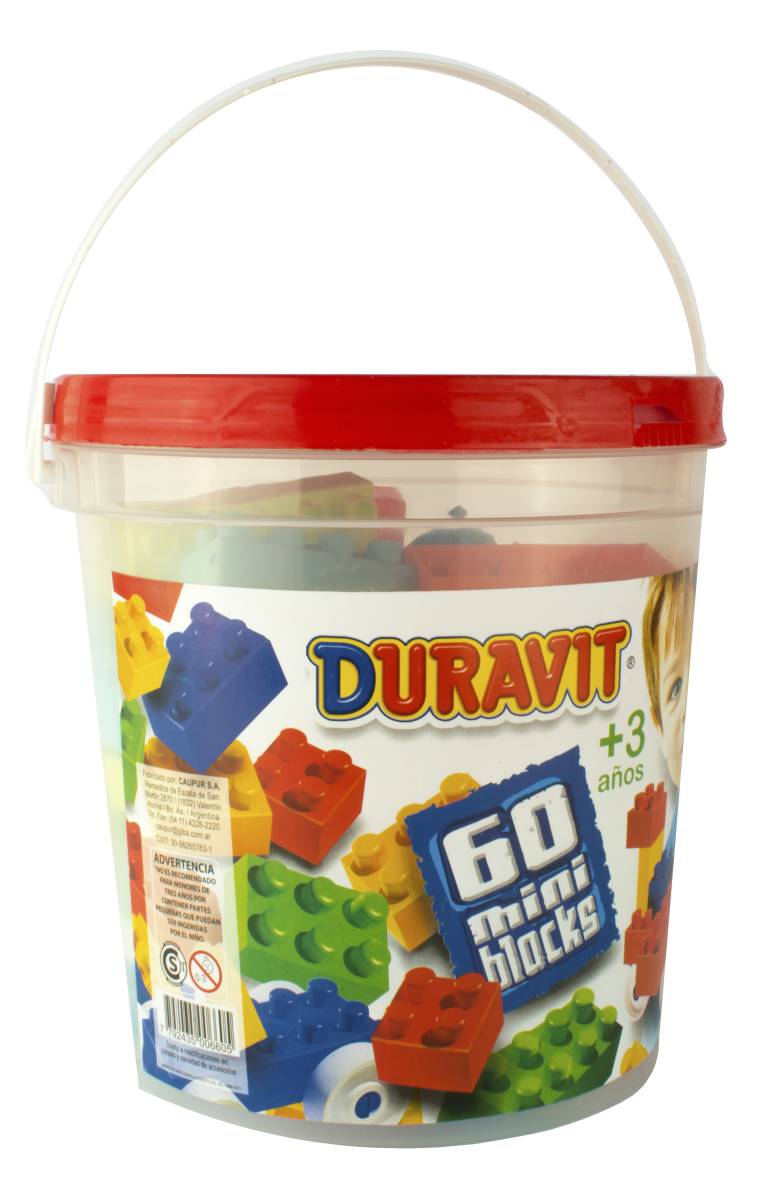 Balde Chico Minibloques. Contiene 60 piezas. Crea las mas divertidas estructuras con los bloques Duravit. ¡Deja volar tu imaginación y creatividad!