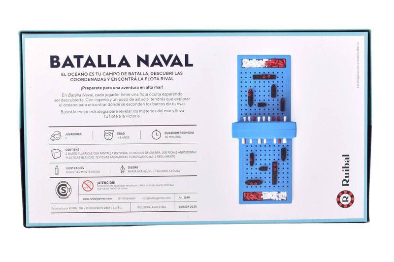 Batalla Naval Ruibal. Juego de mesa, contiene 2 tableros con pantalla divisoria, 10 barcos de guerra, 68 fichas rojas y 168 fichas blancas para pura diversión. hundí barcos y convertiste en un estratega.