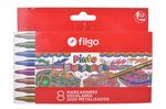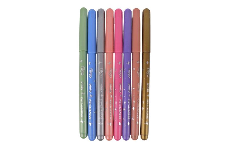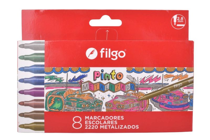 Los marcadores escolares Filgo metalizados, pack de 8 piezas, aportan brillo y color a tus trabajos y proyectos. Con tinta de alta calidad y punta resistente, son ideales para destacar textos, crear diseños llamativos y agregar un toque especial a cualquier tarea escolar o artística.