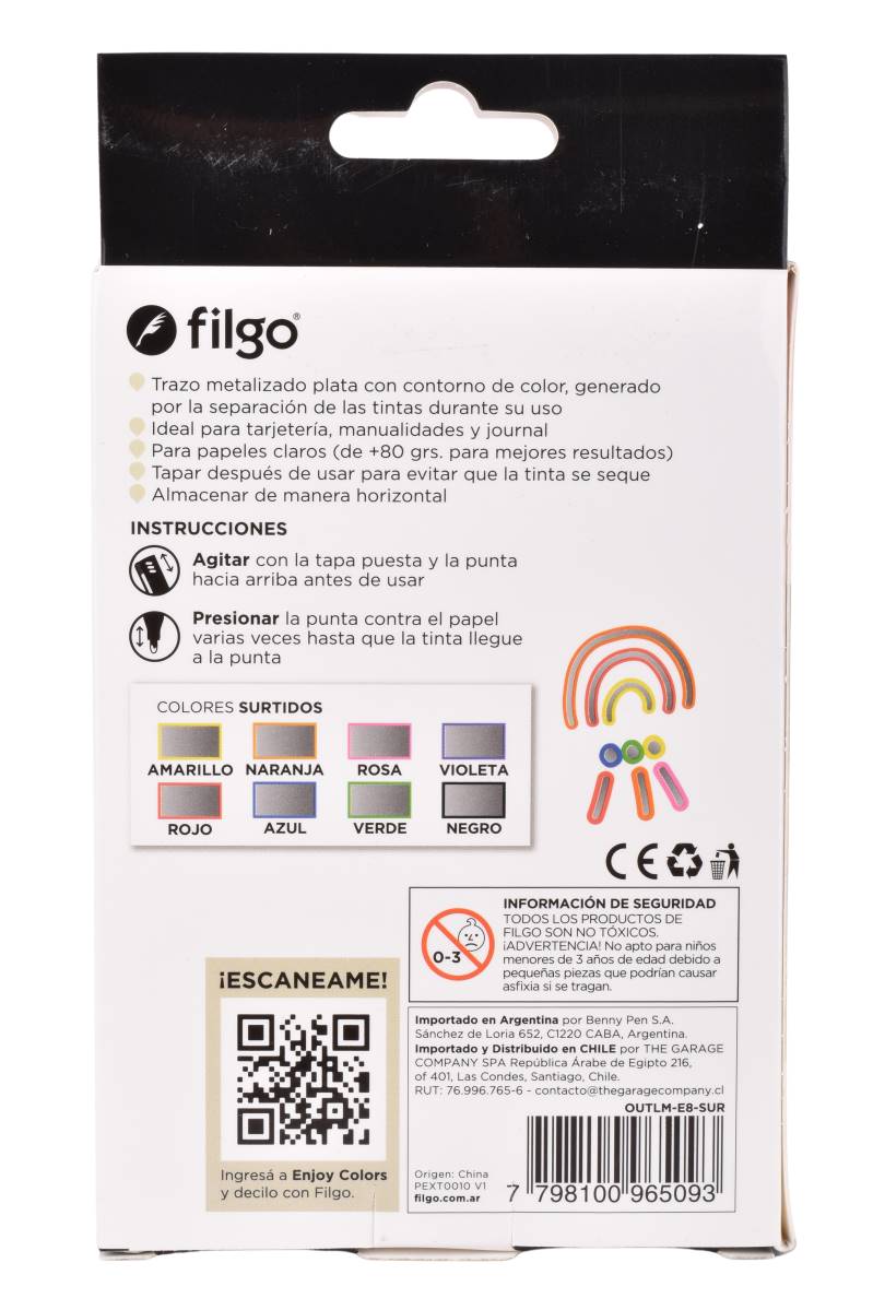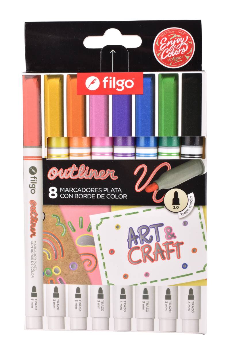 Descubre la creatividad sin límites con estos marcadores Outliner de Filgo. Cada marcador tiene una tinta plateada brillante con un borde de color que le da un toque único y llamativo a tus proyectos artísticos y manualidades.