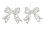Set de 2 moños navideños blancos de 8 cm con glitter, ideales para decorar el árbol o regalos. Elegancia y brillo en tu Navidad. Cómpralos en Ferniplast.com.