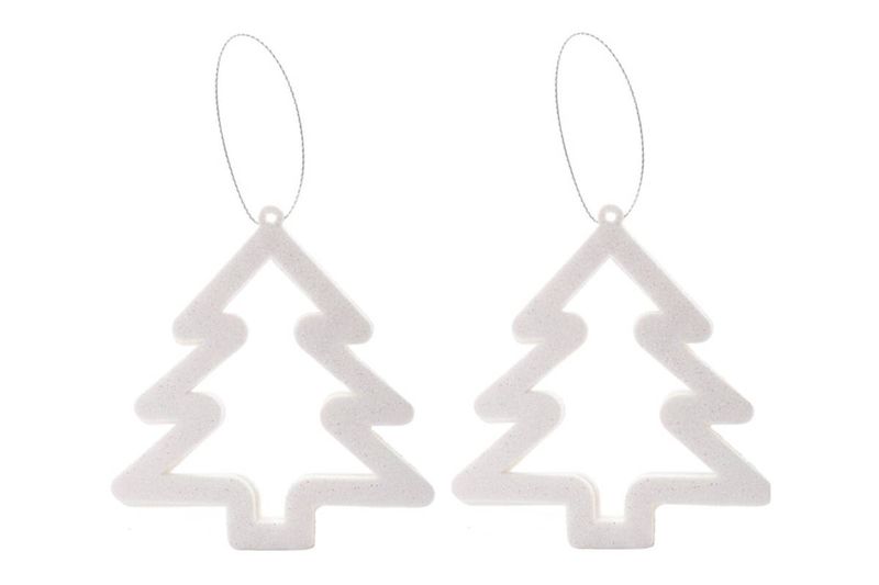 Adorno navideño árbol blanco de 9 cm en pack x2, livianos y brillantes para decorar tu árbol. Realzá tu Navidad. Cómpralo en Ferniplast.com.