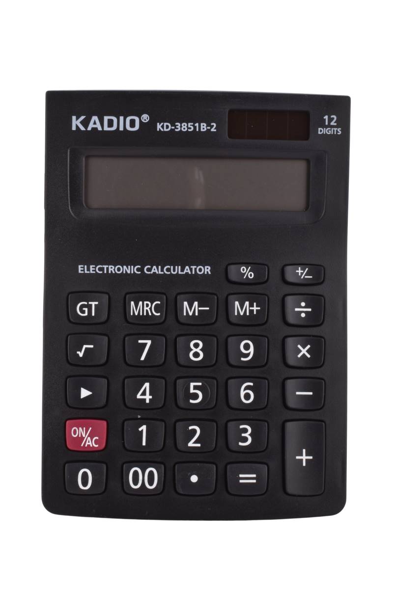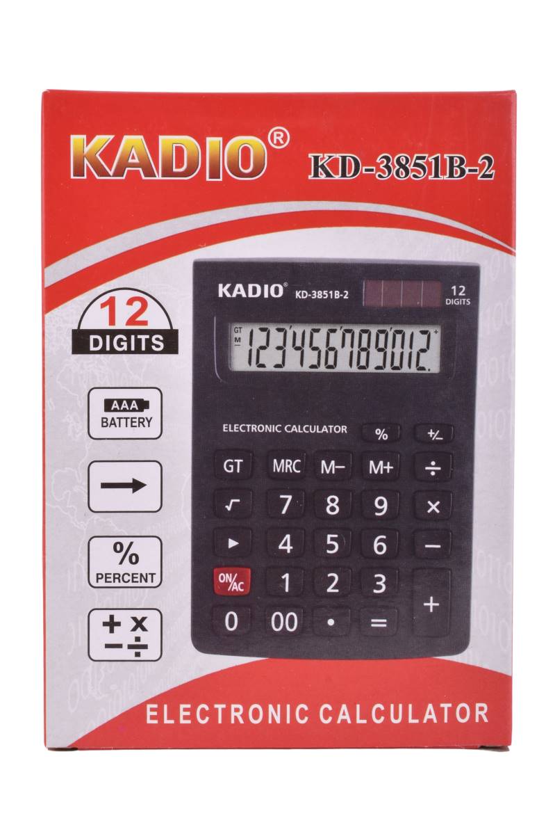 Calculadora electrónica Kadio de 12 dígitos, compacta y funcional para uso diario. Ideal para hogar u oficina. Cómpralo en Ferniplast.com
