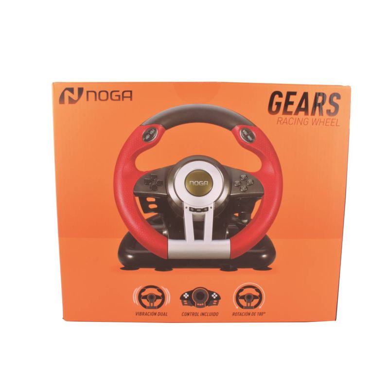Volante Noga con pedalera para PS3/PS4/PC, vibración dual y rotación de 180°. Ideal para juegos de carreras y simuladores. Cómpralo en Ferniplast.com.