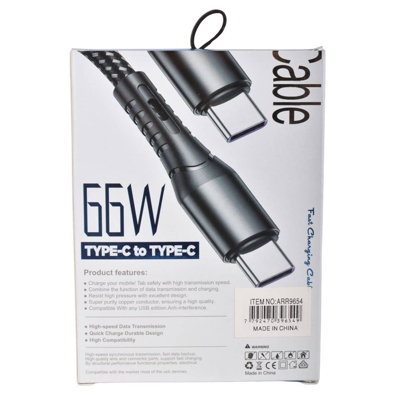 Cable de datos y carga ultra rápida con tecnología de 66W, diseñado para optimizar el tiempo de carga de tus dispositivos móviles y notebooks. Carga de smartphones, tablets y laptops de última generación, así como la sincronización de archivos entre dispositivos con puerto USB-C.