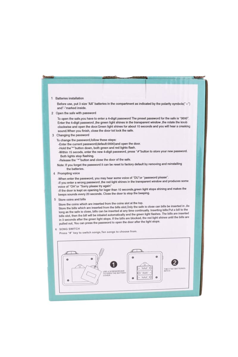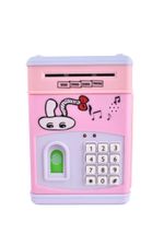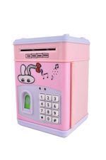 Alcancía electrónica infantil ideal para incentivar el hábito del ahorro de forma divertida. Cuenta con teclado numérico, ranura para billetes y monedas, y efectos de sonido que se activan durante el uso. Su diseño tipo caja fuerte con gráficos animados la hace atractiva para niños y adecuada para el juego educativo diario.