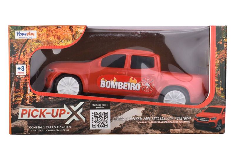 Camioneta pick up de juguete con diseño de bomberos, ideal para estimular el juego imaginativo y las aventuras de los más chicos. Juguete pensado para el juego libre, permitiendo recrear escenas de rescate y aventuras, tanto en interiores como exteriores.