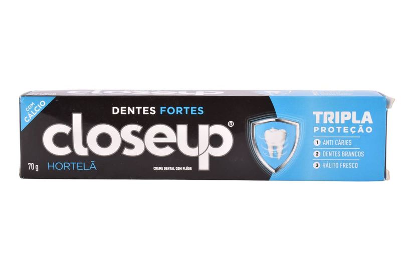Disfrutá de una limpieza profunda con la crema dental Closeup Hortelã. Su fórmula con flúor y calcio ofrece triple protección: combate las caries, blanquea los dientes y deja un aliento fresco por más tiempo.