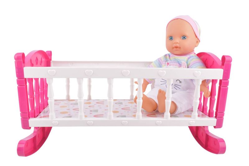 Un bebote interactivo con sonido y cunita mecedora para que los más pequeños jueguen, aprendan y desarrollen su imaginación. Perfecto para juegos de crianza y roles, estimulando la imaginación, el cuidado y la expresión emocional en niños y niñas.