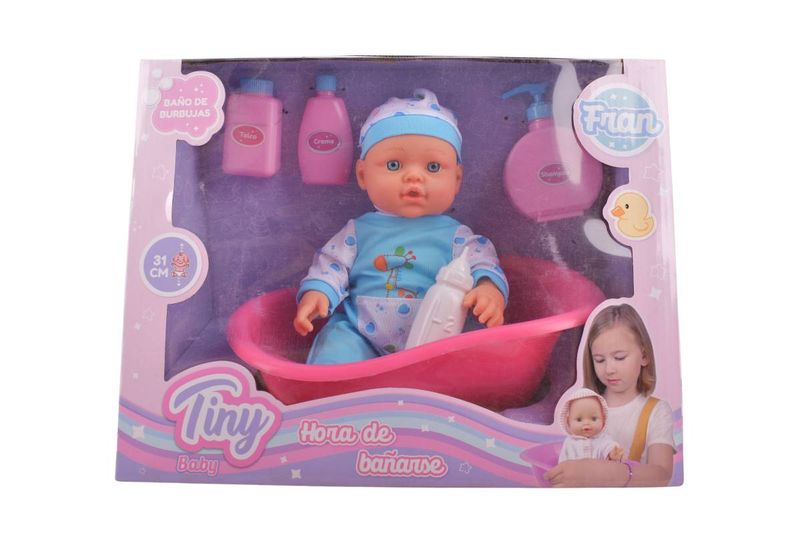 Bebote Tiny 31 cm con bañera y accesorios para jugar a la hora del baño. Ideal para regalar y estimular el juego. Cómpralo en Ferniplast.com.