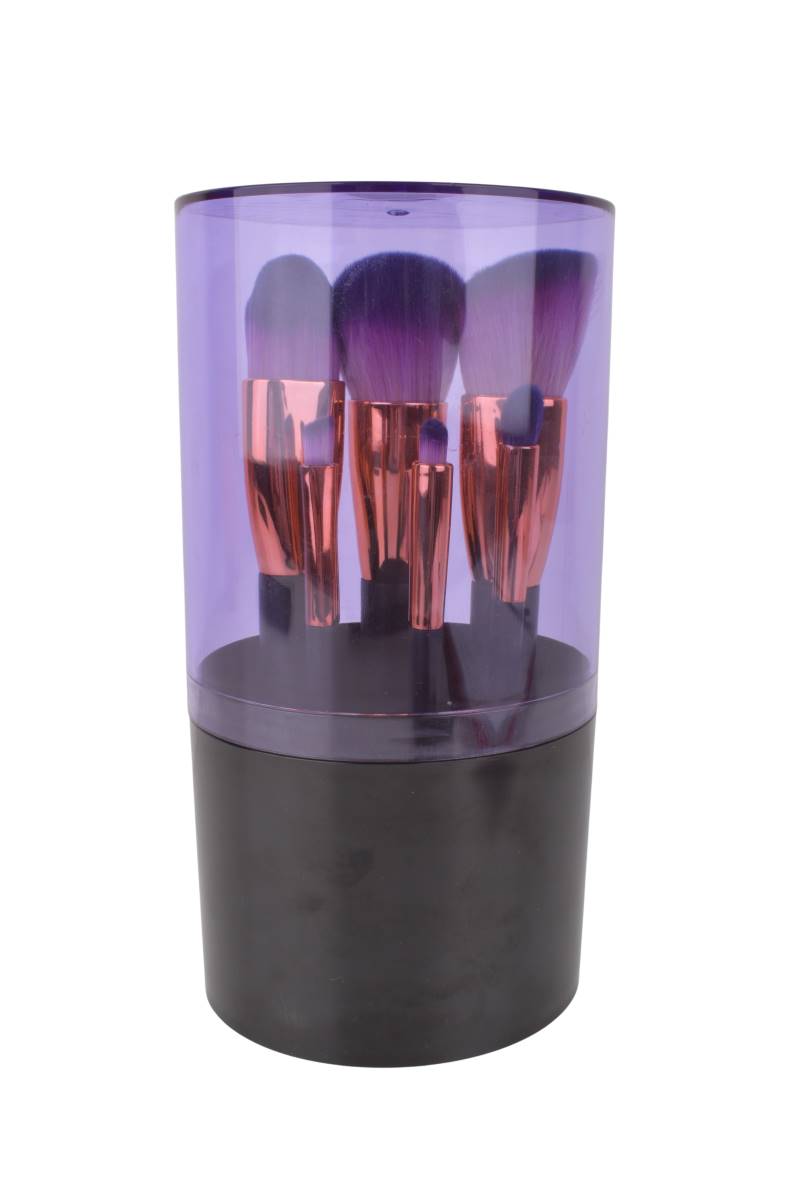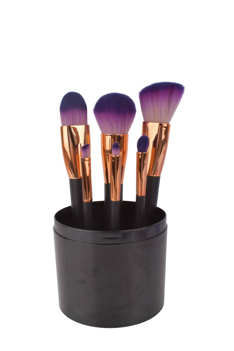 Logra un look impecable en cualquier lugar con este set de 5 pinceles de maquillaje profesional en tamaño mini. Con mangos dorados elegantes y cerdas suaves de alta calidad, este kit incluye los esenciales para aplicar base, polvos, sombras y más, perfecto para viajes o retoques rápidos.