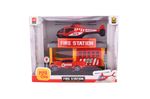 Incluye: Estación, helicóptero, vehículo de bombero.