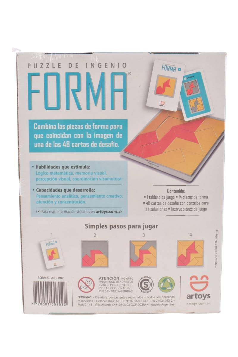 Pon a prueba tu pensamiento lógico y espacial con el Puzzle de Ingenio Forma. Este desafiante juego incluye 48 cartas con diferentes retos que te invitan a crear figuras utilizando las piezas geométricas. Este puzzle es ideal para desarrollar la concentración, la creatividad y la capacidad de resolución de problemas.