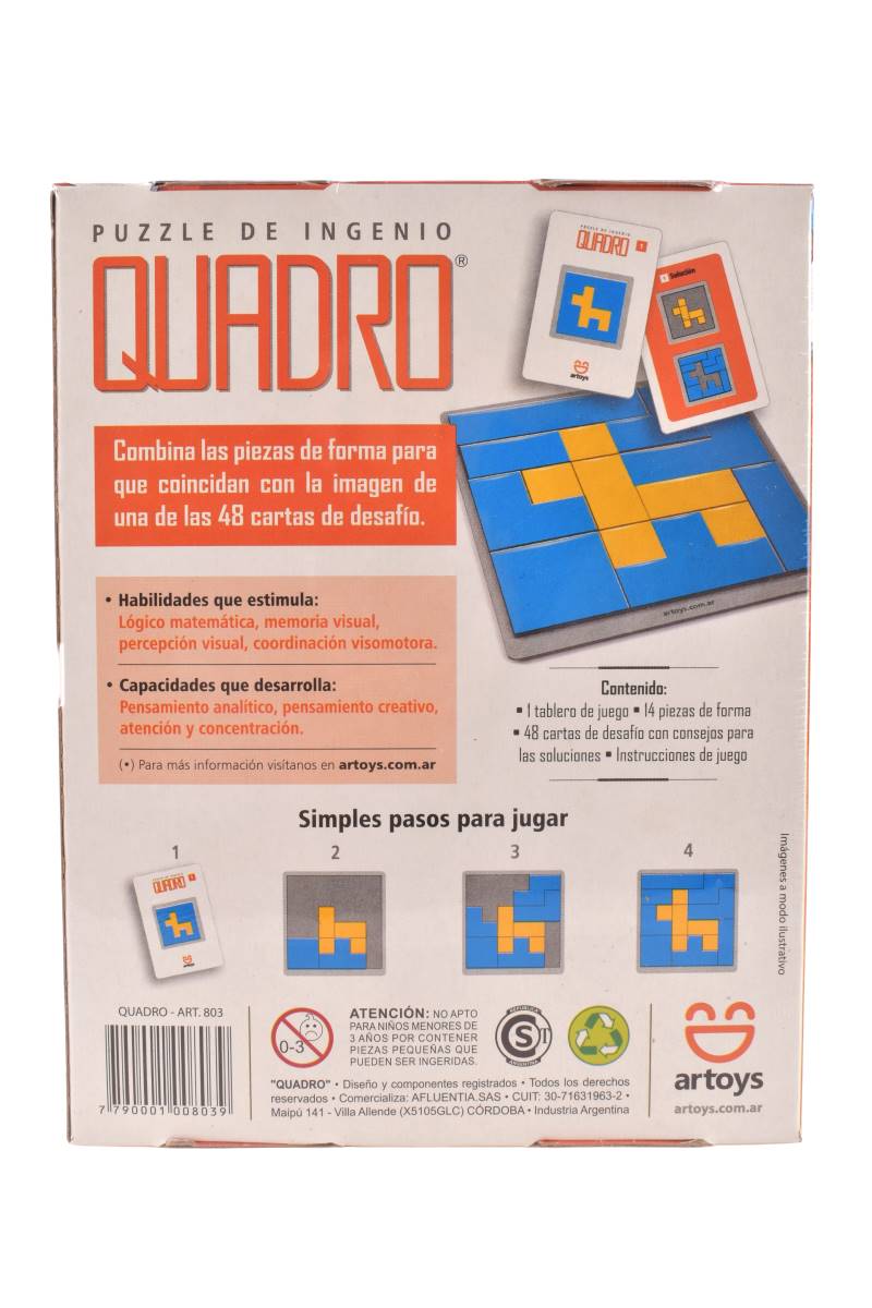 Desafía tu mente y ejercita tu pensamiento lógico con el Puzzle de Ingenio Quadro. Este juego incluye 48 cartas con retos que te invitan a crear figuras utilizando las piezas geométricas. Perfecto para adultos, este puzzle es ideal para desarrollar la concentración, la creatividad y la capacidad de resolución de problemas.