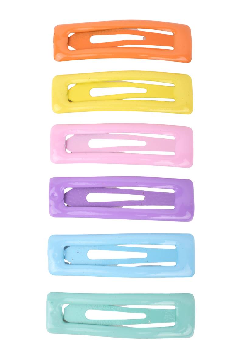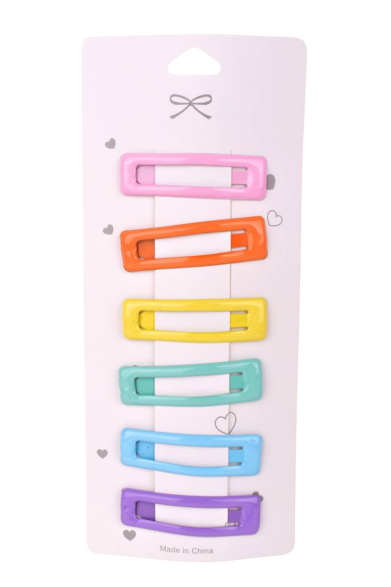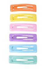 Hebillas para cabello de colores surtidos x6, prácticas y livianas para uso diario. Ideal para peinados simples. Cómpralo en Ferniplast.com.