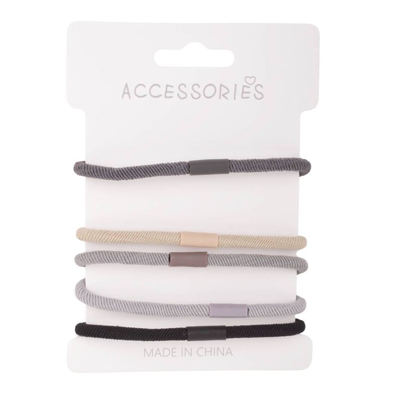 Set de gomitas para cabello elásticas en tonos neutros, ideales para el uso diario. Permiten sujetar el cabello de forma práctica y discreta, adaptándose a distintos estilos como colas y recogidos simples. Su diseño sobrio las hace adecuadas tanto para adultos como para uso escolar o laboral.