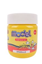Témpera Model color amarillo medio en envase de 250 g, ideal para trabajos escolares y actividades artísticas que requieren colores intensos y buena cobertura.