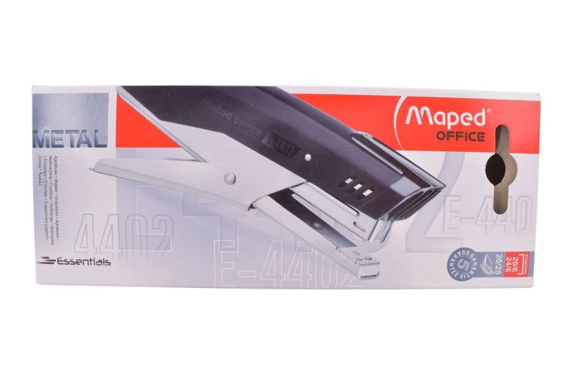 Abrochadora Maped Essential Metal tipo pinza, compatible con broches 24/6 y 26/6. Ideal para oficina y estudio. Cómpralo en Ferniplast.com