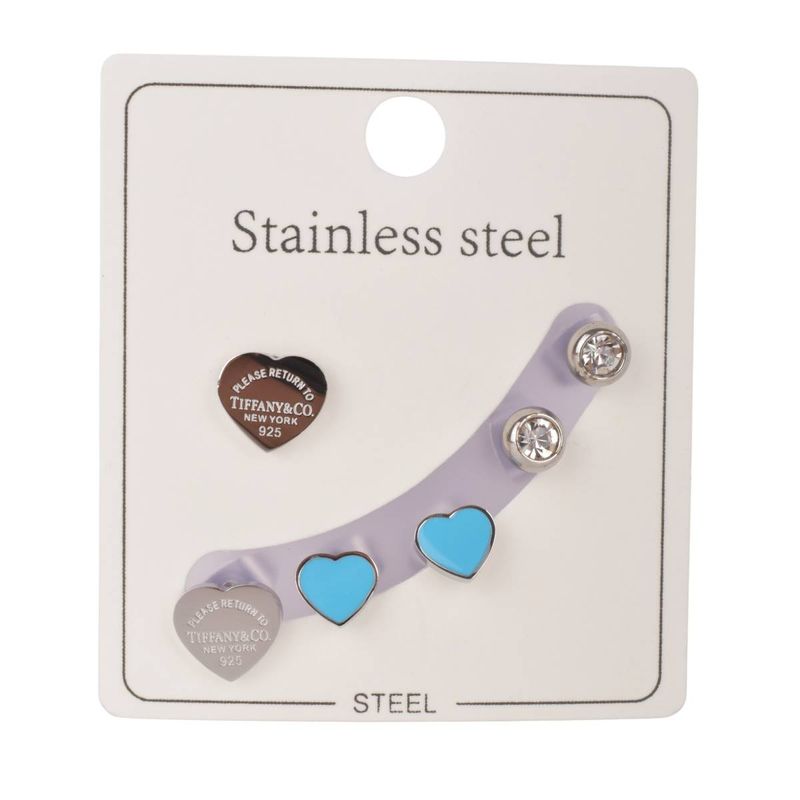 Set de aros de acero inoxidable con diseños de corazones y strass, ideal para combinar y usar todos los días. Cómpralo en Ferniplast.com