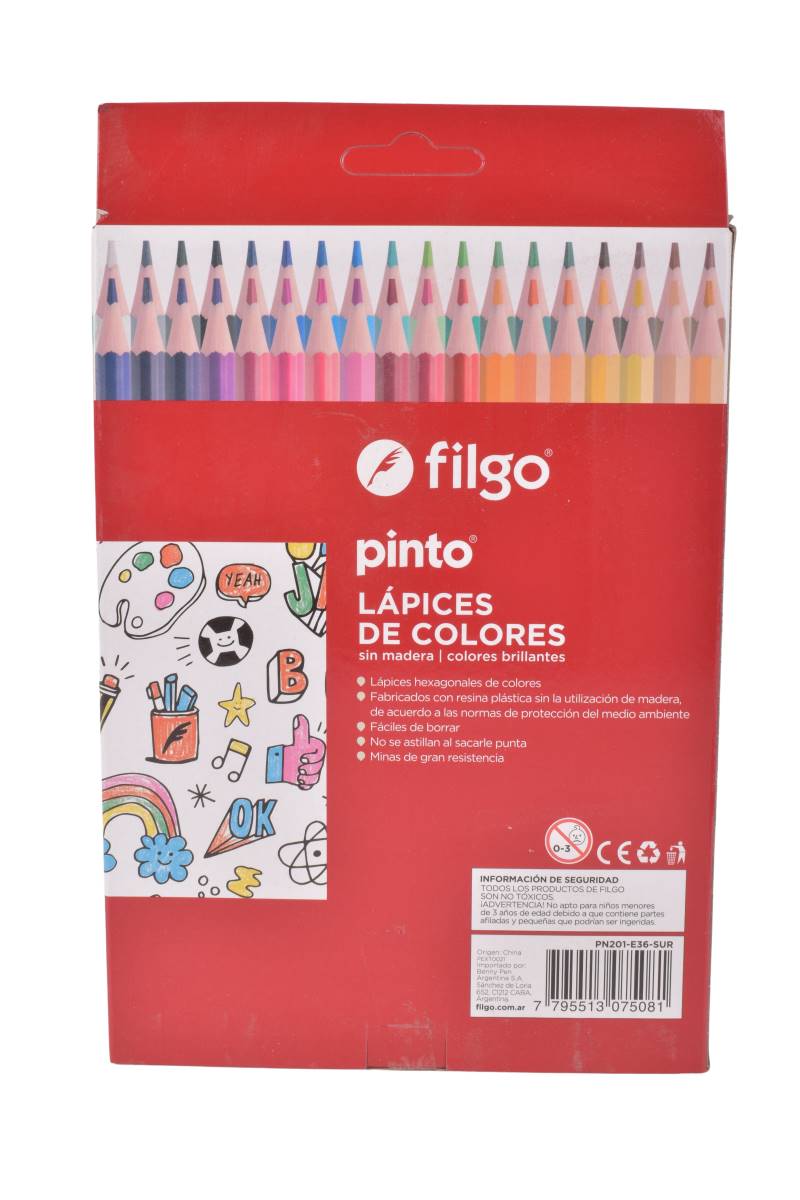 Lápices de colores Filgo Pinto x36 unidades con tonos brillantes, ideales para dibujo y uso escolar. Sumalos a tus útiles. Cómpralo en Ferniplast.com