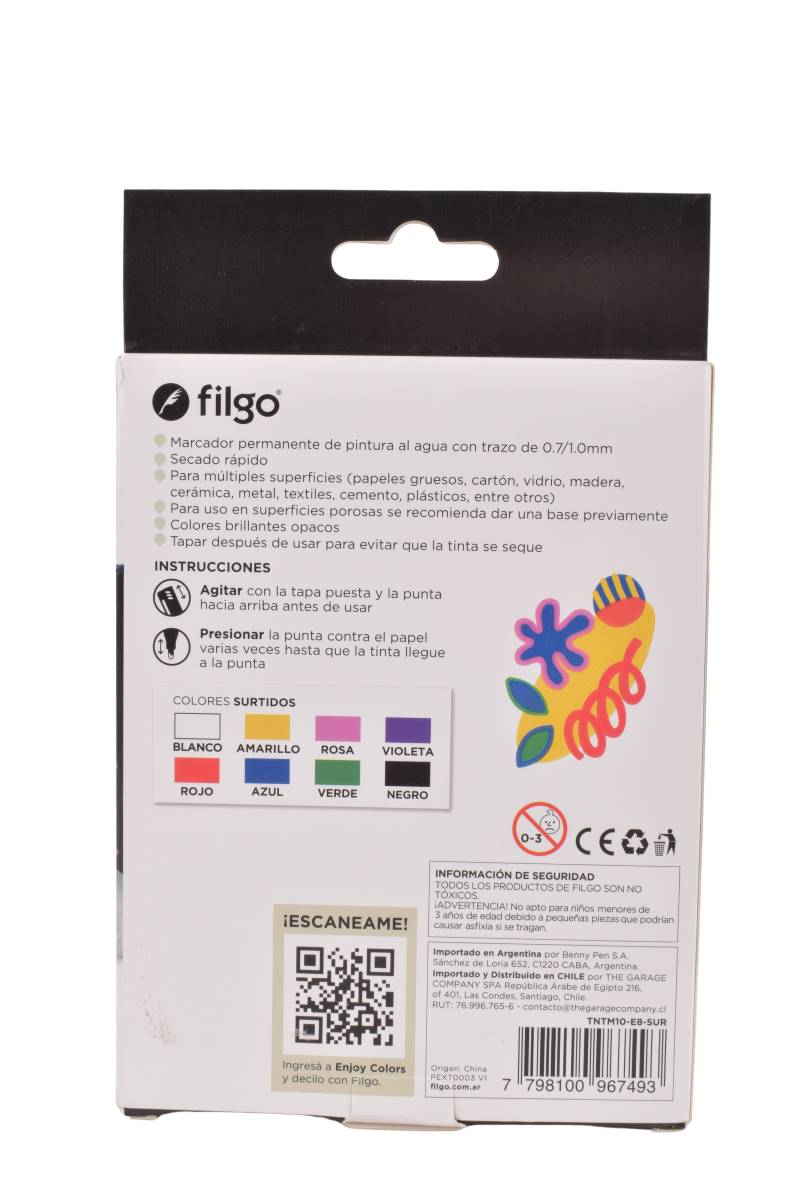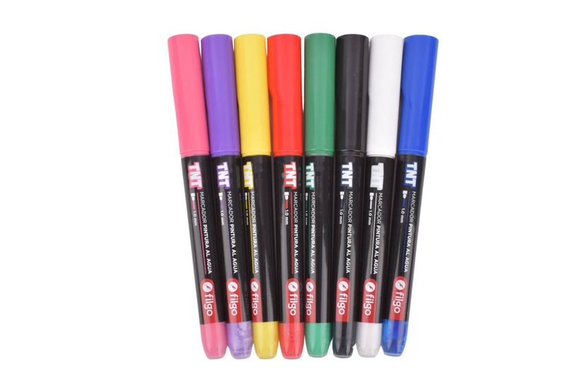 Marcadores Filgo TNT 1.0 pintura al agua surtidos x8, colores opacos y uso multisuperficie. Ideales para manualidades. Cómpralo en Ferniplast.com
