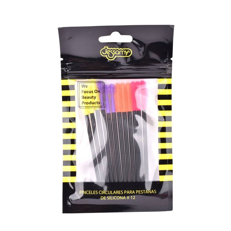 Pinceles para ojos Jessamy de silicona, circulares, pack de 12 unidades, ideales para aplicar máscara y peinar pestañas con precisión.