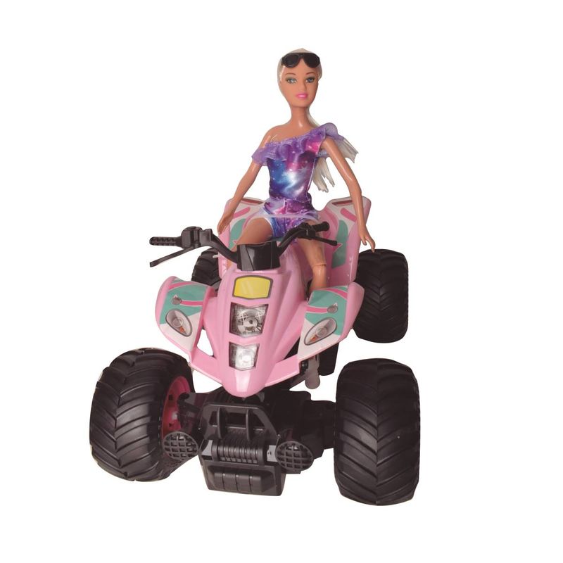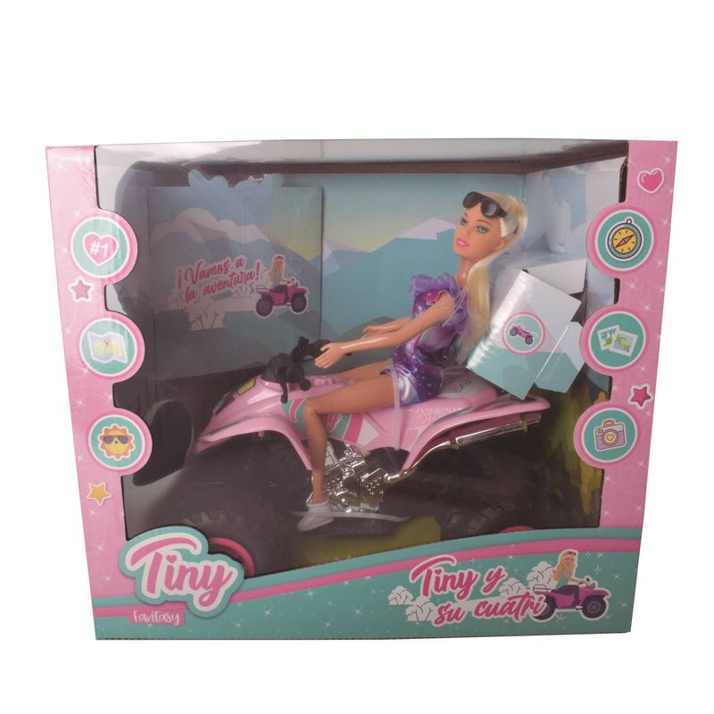 Esta muñeca viene con su propio cuatriciclo, lo que permite a los niños disfrutar de juegos de aventura y acción. Con una muñeca que se adapta perfectamente al cuatriciclo, los pequeños podrán imaginar viajes y exploraciones en terrenos imaginarios, promoviendo el juego creativo y el desarrollo de habilidades motrices.