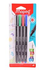 Microfibras Maped Graph Peps 0.4 mm x4 en colores clásicos, ideales para escritura y dibujo preciso. Compralas en Ferniplast.com