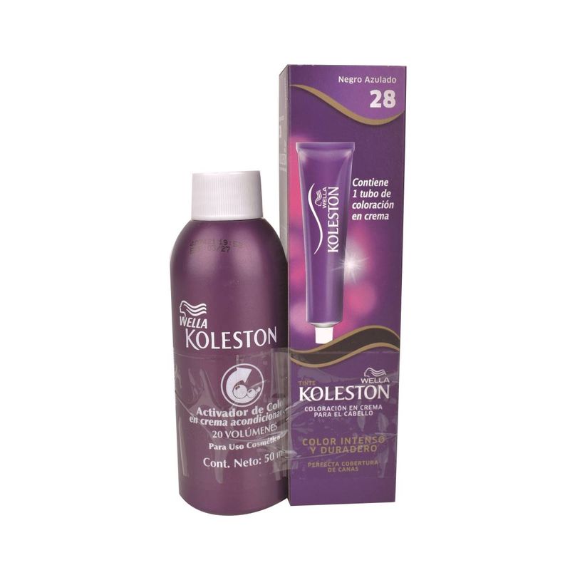 Tintura Koleston Negro azulado 28, coloración en crema para el cabello con color intenso y duradero. Cobertura perfecta de canas y fórmula que cuida tu cabello.