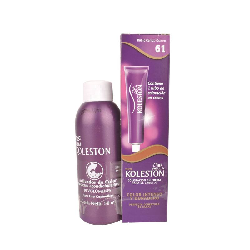 Tintura Koleston Cenizo Oscuro 61, coloración en crema para el cabello con color intenso y duradero. Cobertura perfecta de canas y fórmula que cuida tu cabello.