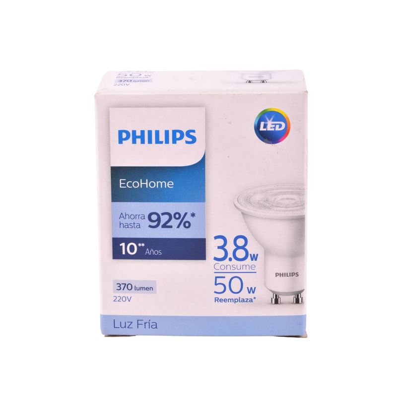 Lámpara LED Philips dicroica GU10 3.8W luz fría, bajo consumo y 370 lúmenes. Ideal para spots y empotrables. Cómpralo en Ferniplast.com