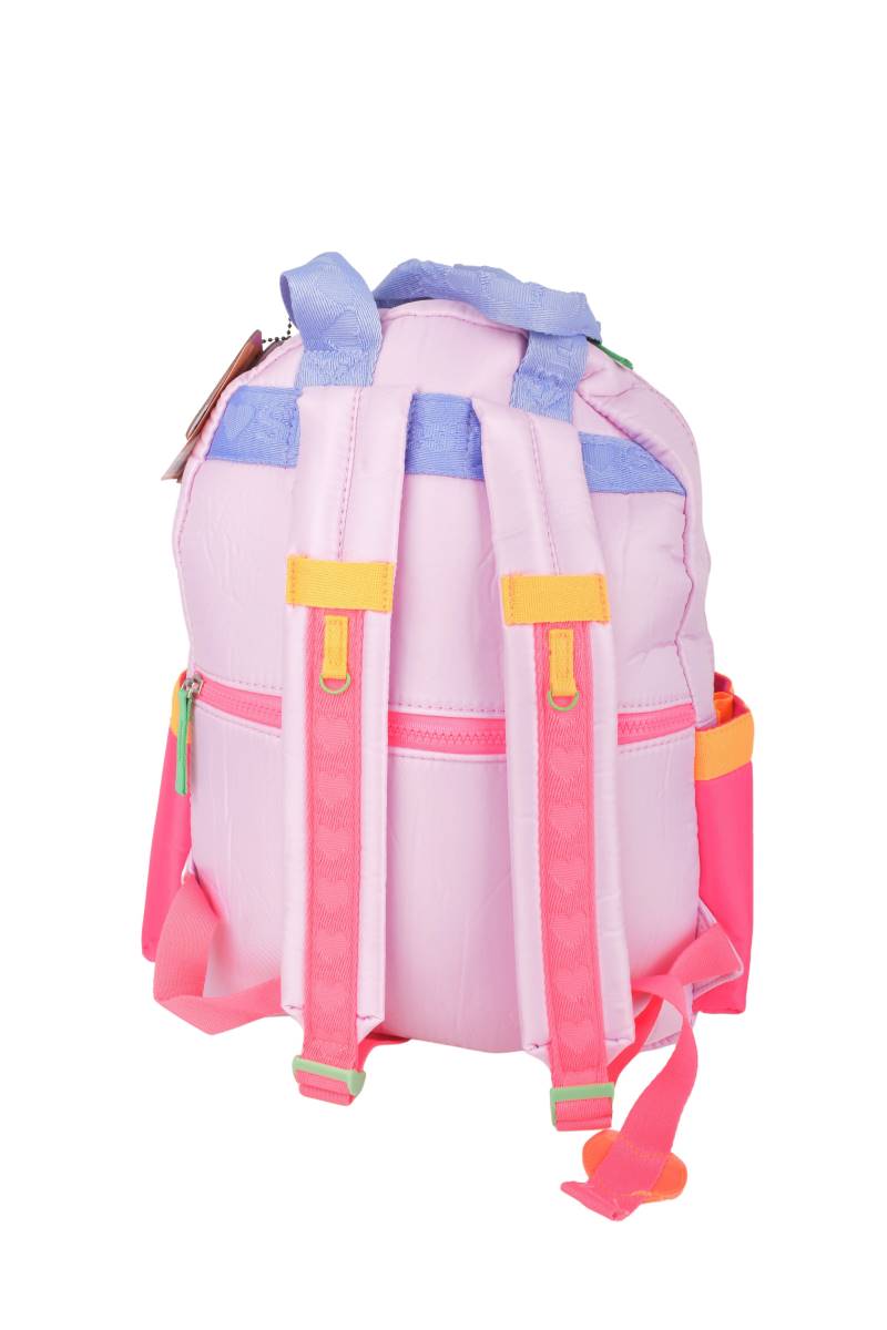 Mochila infantil de 16" con diseño Simones y monedero incluido, ideal para el uso escolar diario con un toque divertido y funcional. Ideal para la escuela, actividades diarias o salidas, permitiendo organizar útiles, cuadernos y accesorios personales.