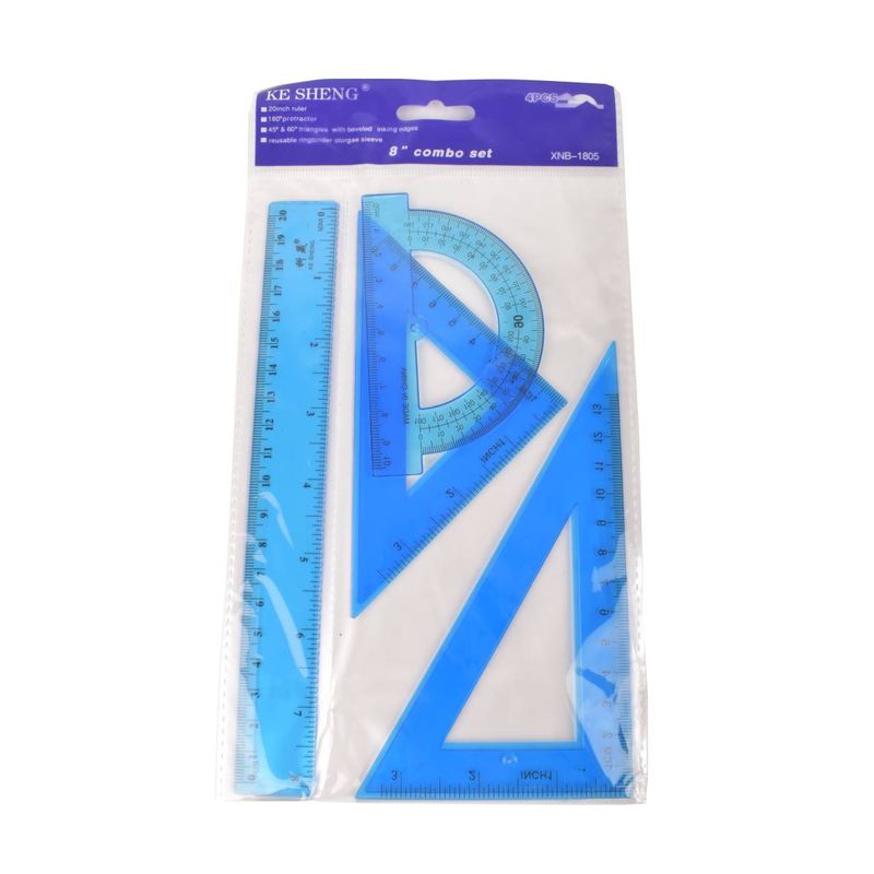 Nuestro set de geometría es la herramienta perfecta para estudiantes de todas las edades. Incluye una regla, un transportador y dos escuadras, todo lo necesario para realizar tus tareas escolares con precisión y facilidad. Fabricado con material transparente de alta calidad, este set te permitirá visualizar las líneas y ángulos con claridad.