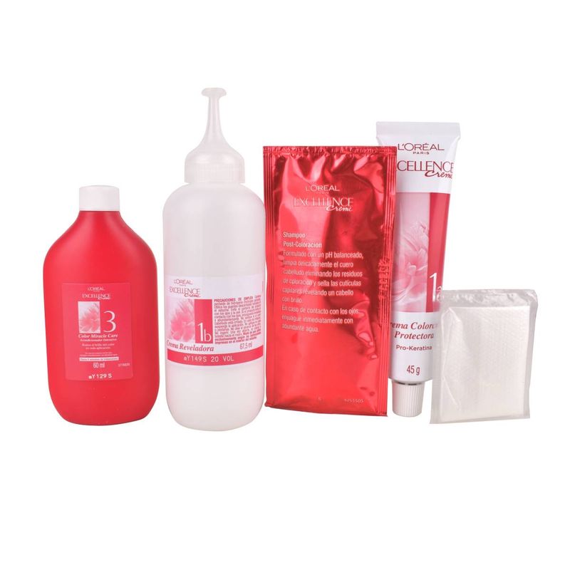 Si buscas una coloracion permanente, con 100% cobertura de canas y una rutina que cuide tu pelo, ¡Excellence es para vos! Excellence Creme Coloración Triple Cuidado enriquecida con Pro-Keratina, protege tu pelo antes, durante y después de la coloración. Cobertura de 100% de canas, para un color perfecto, radiente y duradero.