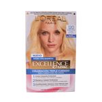 L'Oréal Excellence Creme 120 Rubio Ultra Claro Natural, coloración permanente con triple cuidado: crema colorante protectora, shampoo cuidado profesional y acondicionador intensivo. ¡Rubio radiante, 100% cobertura de canas y cabello cuidado!