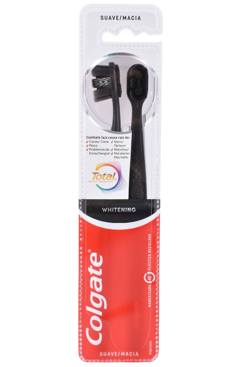 Consigue una limpieza bucal completa y una sonrisa más blanca con el Cepillo Dental Colgate Total Whitening. Su diseño de cerdas suaves te permite combatir la placa y las manchas sin dañar las encías. Este cepillo te ayuda a combatir las caries, sarro, gingivitis, problemas de manchas y mal aliento, mientras que su material de 40% plástico reciclado lo hace una opción más sostenible.
