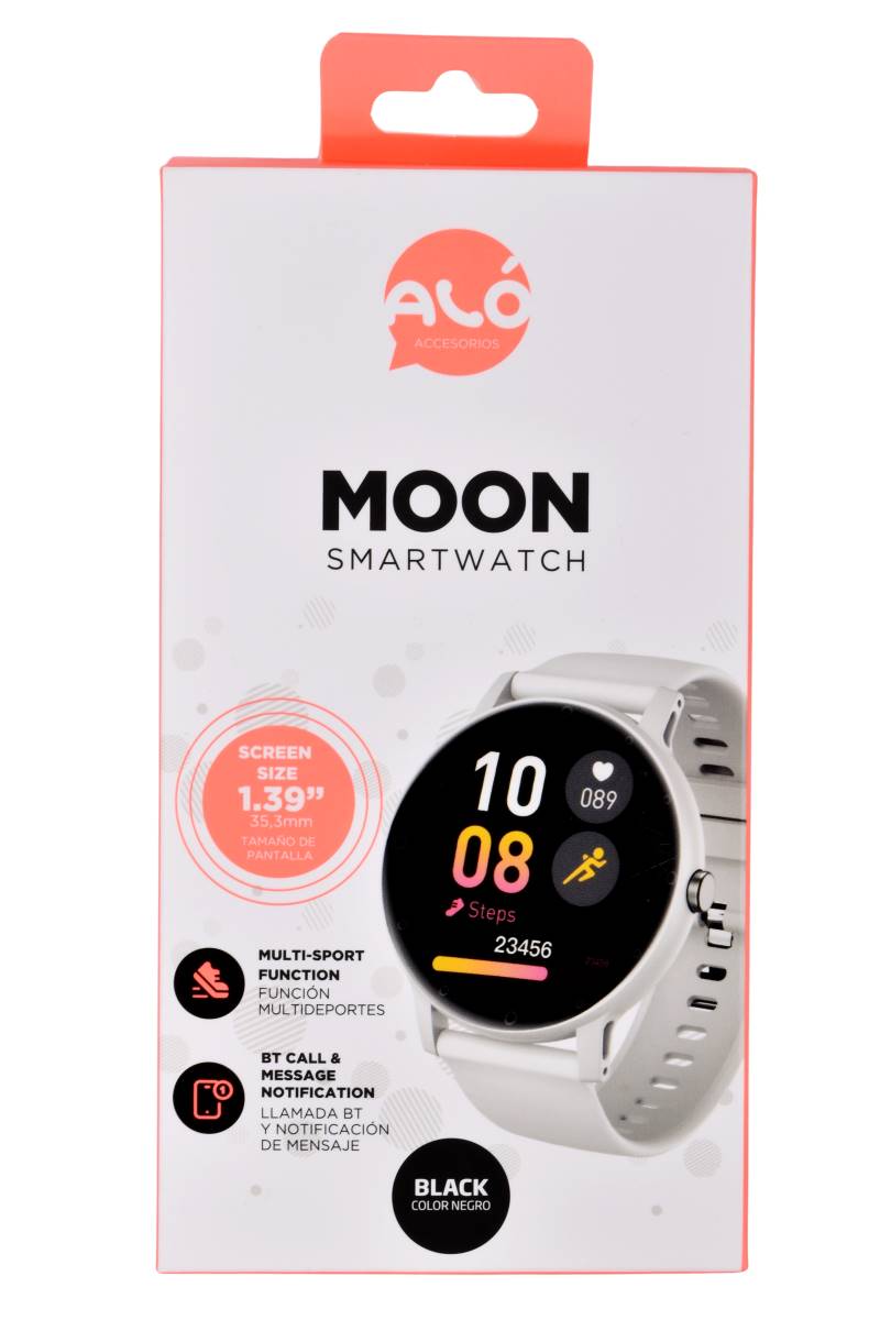 Smartwatch ALÓ Moon negro. Pantalla 1.39". Recibe notificaciones y registra tus deportes. Control total en tu muñeca. ¡Cómpralo en Ferniplast.com!