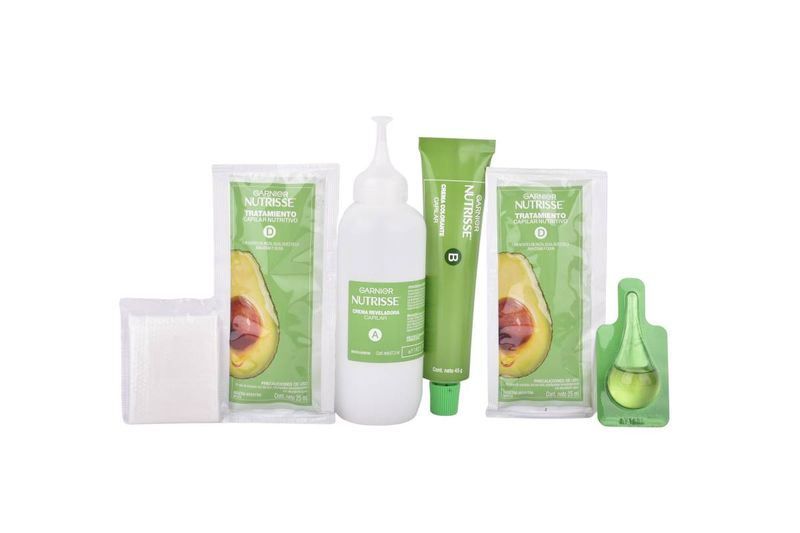 - El kit contiene: 1 crema reveladora, 1 crema colorante, 1 gota capilar y 1 tratamiento nutritivo
