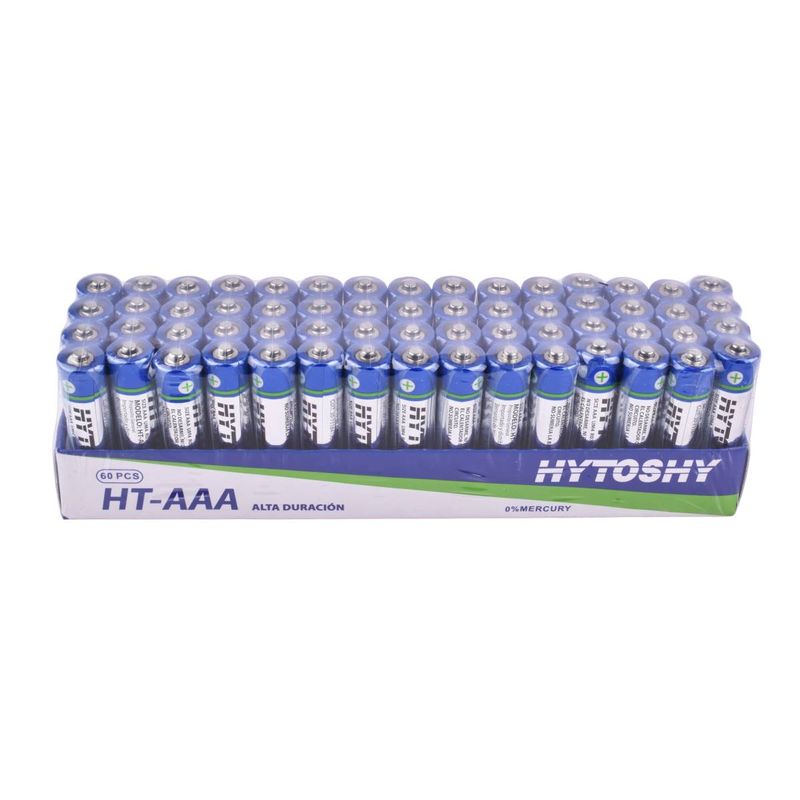 Pack de 60 pilas AAA Hytoshy, ideales para todo tipo de dispositivos como controles remotos, juguetes, linternas y más. Garantizan un rendimiento confiable y duradero para que tus aparatos funcionen siempre que los necesites.