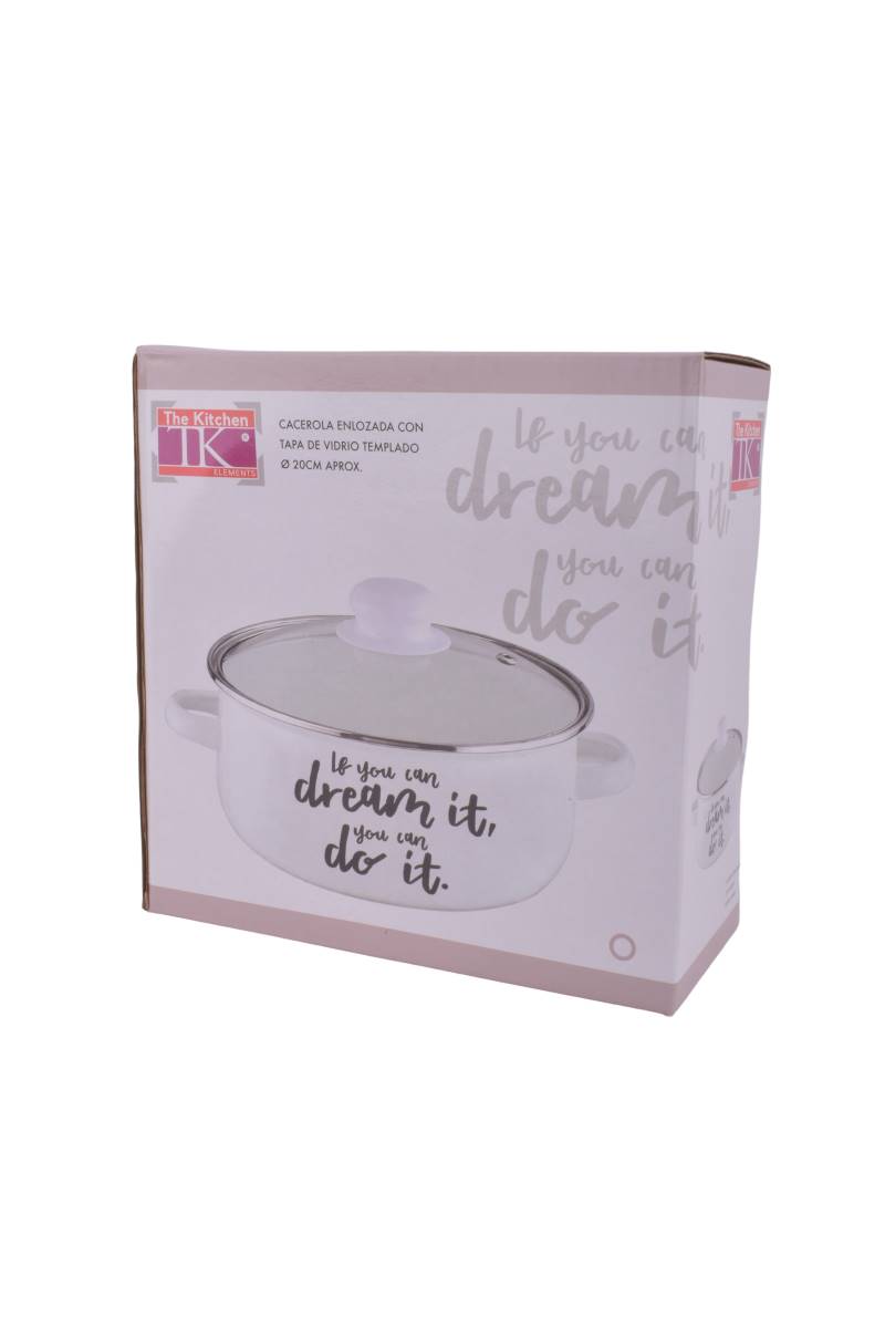 Cocina tus platos favoritos con esta cacerola enlozada de The Kitchen TK. Con un diámetro de 20 cm y una tapa de vidrio templado, es ideal para preparar guisos, sopas y otras deliciosas recetas. Su diseño clásico y material resistente la convierten en un básico indispensable en tu cocina.