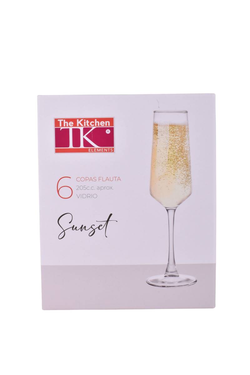 Set de 6 copas flauta de vidrio The Kitchen de 205 ml, ideales para champagne y espumantes. Diseño elegante para brindar. Cómpralo en Ferniplast.com