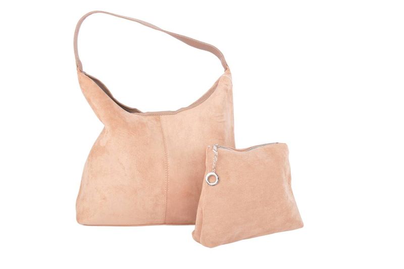 Esta sofisticada cartera hobo confeccionada en suave gamuza combina estilo y funcionalidad. Su diseño amplio y cómodo se complementa con un práctico neceser, ideal para organizar tus cosméticos o pequeños objetos esenciales. Un accesorio elegante y versátil para el día a día.