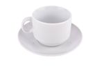 Taza de té blanca con plato de 220 ml, ideal para infusiones y uso diario. Diseño clásico y práctico. Cómpralo en Ferniplast.com