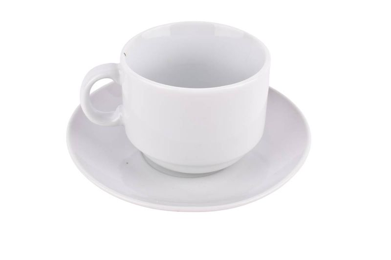 Set clásico de taza de té con plato, ideal para el uso diario y presentaciones simples y elegantes. Apta para servir té, infusiones o café liviano en el hogar, oficinas o gastronomía.