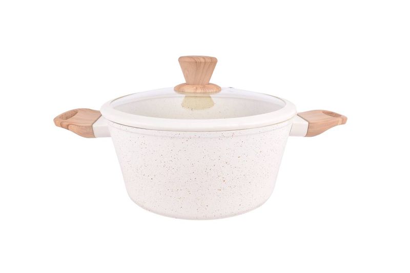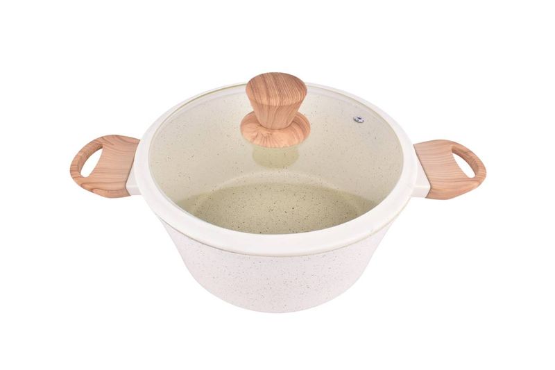 Cacerola antiadherente 24 cm Carol. Triple capa efecto granito, asas símil madera y tapa de vidrio. Cómpralo en Ferniplast.com