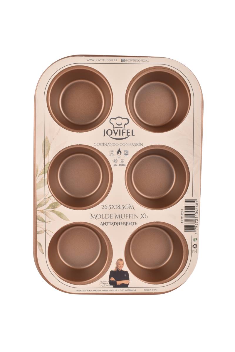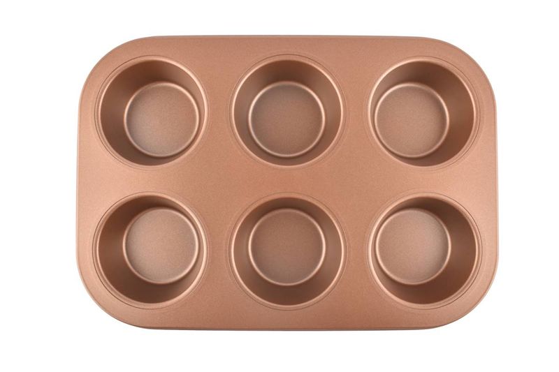 Práctico y elegante, ideal para hornear muffins o cupcakes de manera uniforme. Su acabado cobre aporta estilo a la cocina y facilita la limpieza después de usarlo.