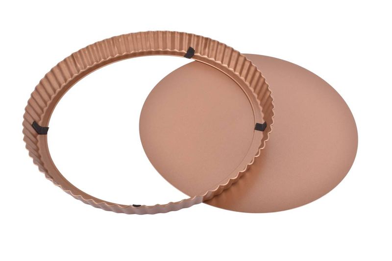 Prepará tartas, bizcochuelos y budines con facilidad gracias a esta tartera Jovifel desmontable de 28 cm. Su diseño con base removible permite desmoldar sin esfuerzo, conservando la forma perfecta de tus preparaciones.