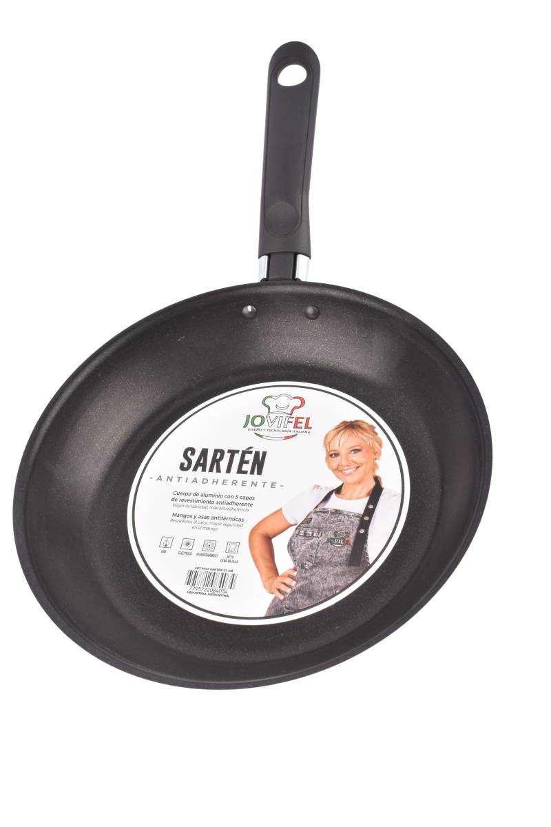 Cociná con facilidad y estilo con este sartén antiadherente de 22 cm de la marca Jovifel. Su recubrimiento Bronze evita que los alimentos se peguen, facilitando la cocción y la limpieza, convirtiéndolo en un aliado práctico para tu cocina diaria