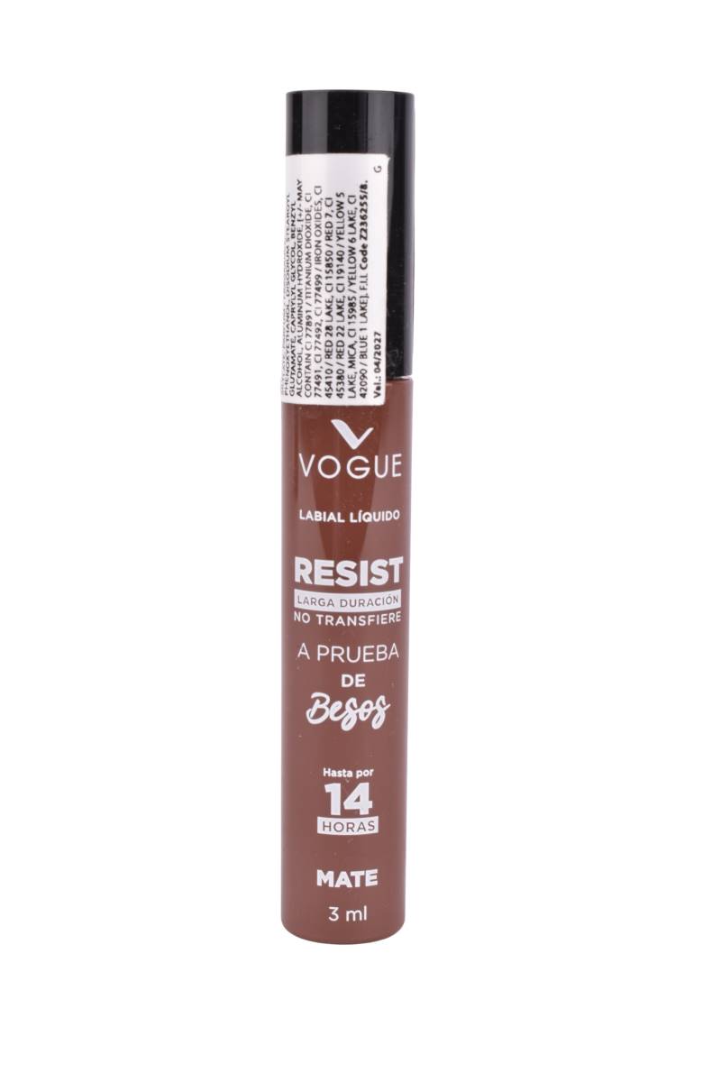 Descubre el labial líquido Vogue Resist, tu aliado perfecto para un color impecable que no transfiere. Su fórmula de larga duración promete hasta 14 horas de acabado mate, resistiendo besos y el paso del tiempo. Ideal para un look duradero y sin retoques.